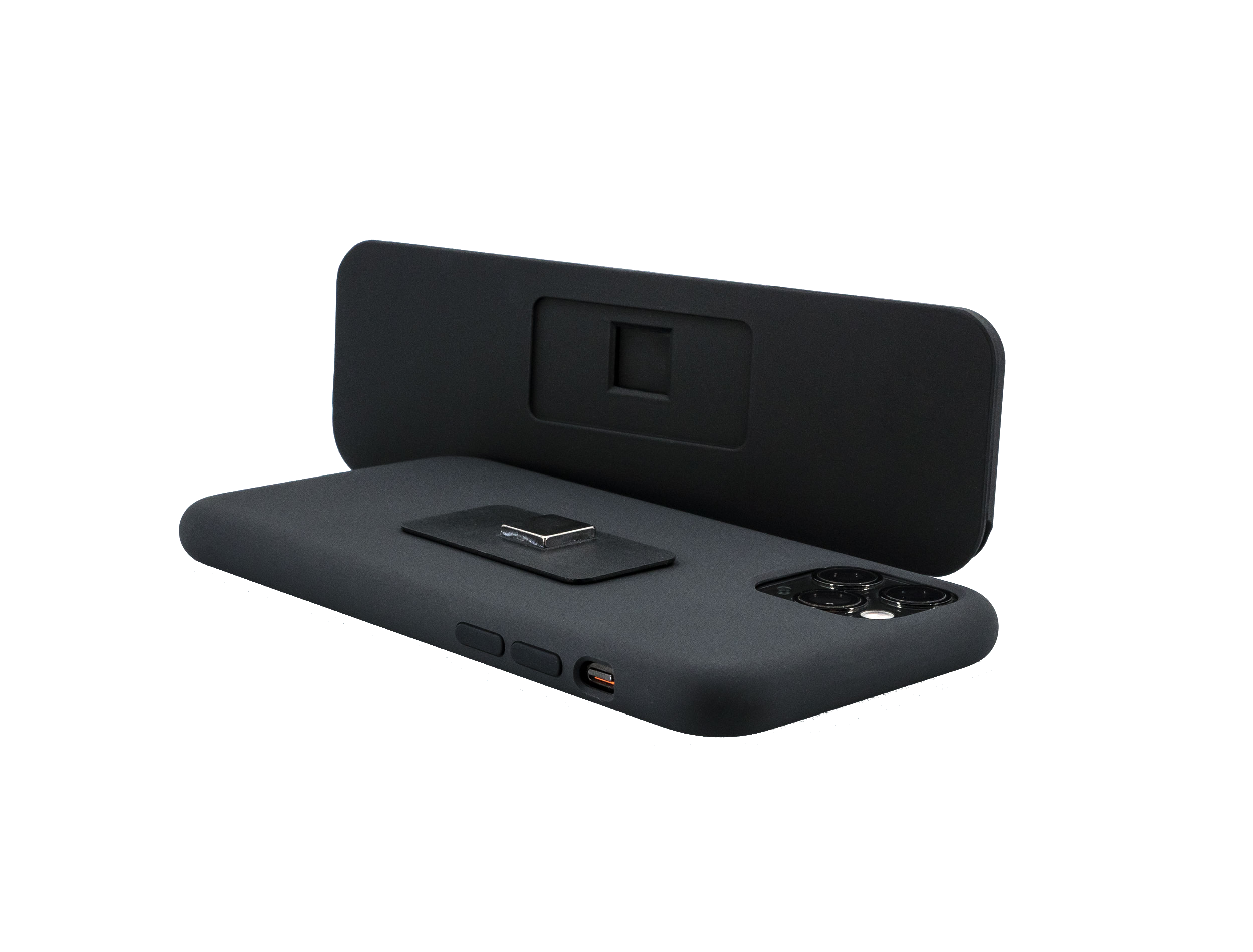 Include carcasă subțire de 6 mm cu atașare magnetica pentru smartphone-uri.