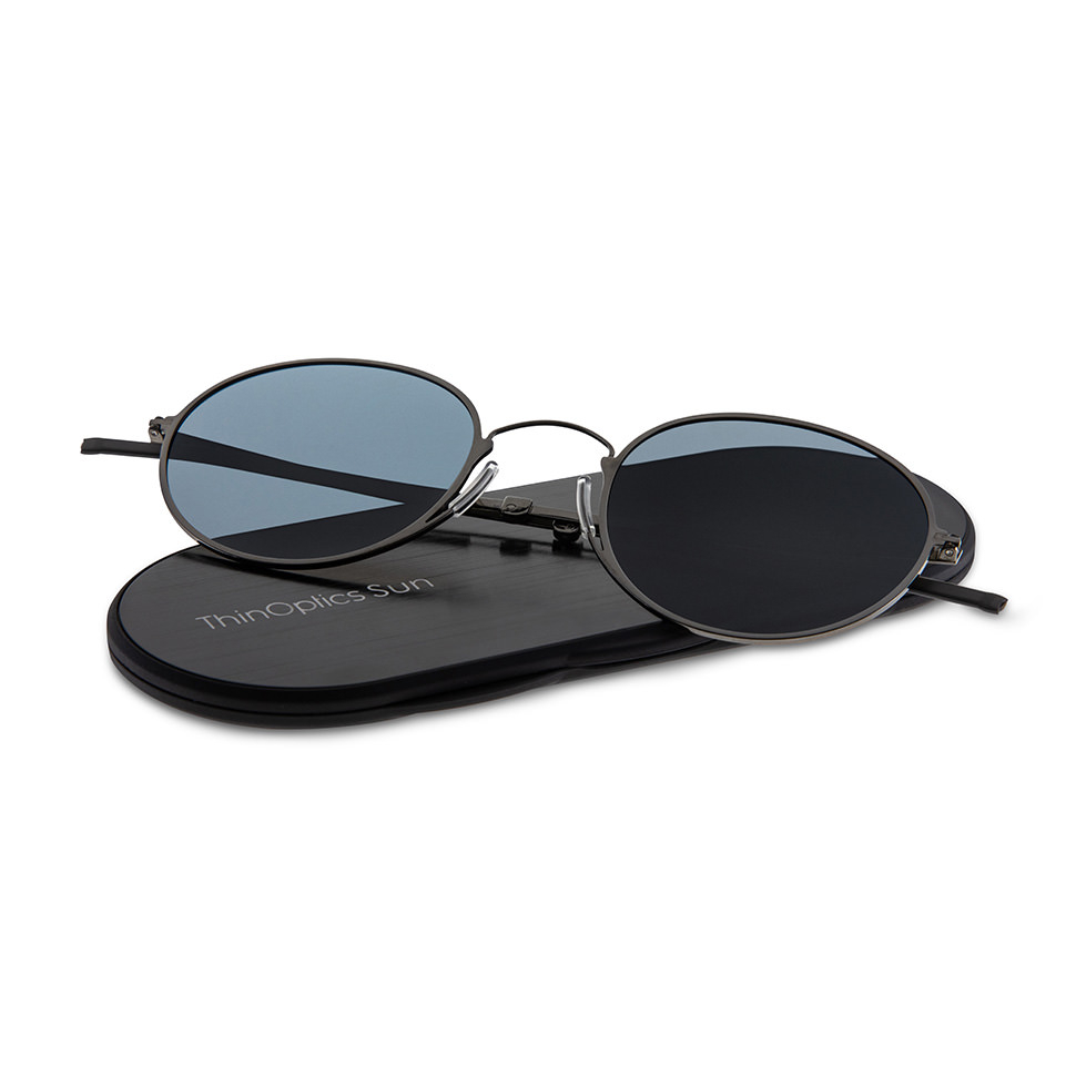 Ochelarii de soare ThinOptics sunt cool de purtat și au un etui foarte subtire usor de pus oriunde.