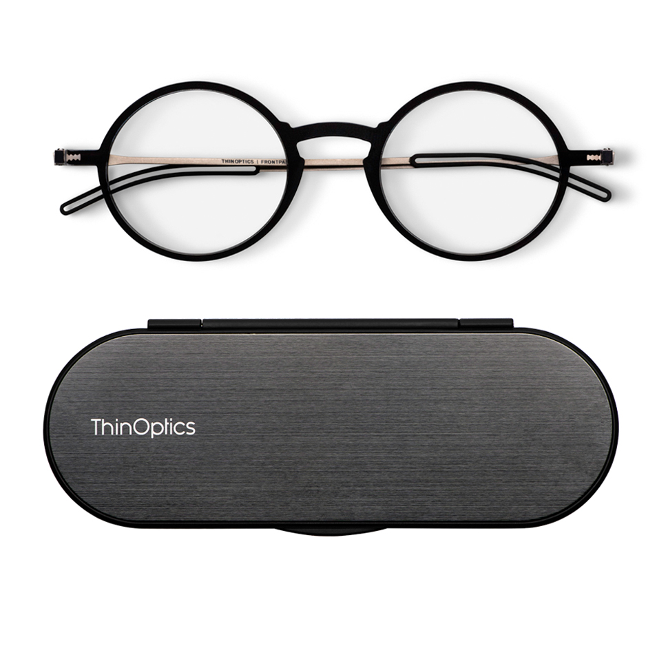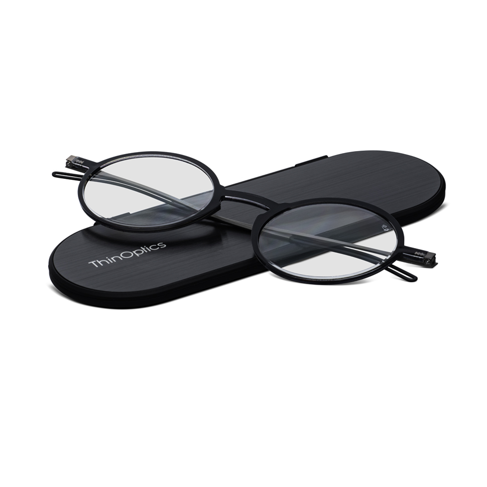 Ochelarii de citit cu brate Manhattan și etuiul Milano sunt cei mai subțiri și mai ușori ochelari din lume.